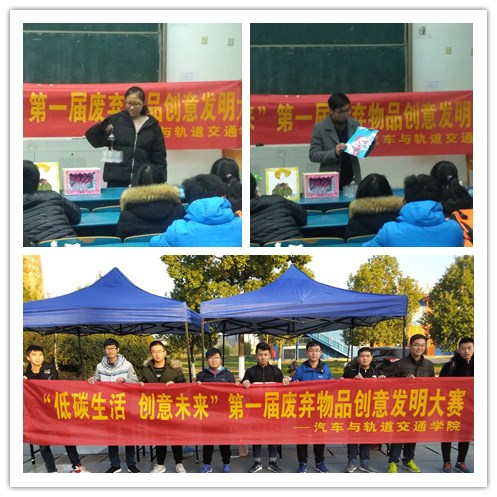 近日,汽车与轨道交通学院“低碳生活,创意未来”首届废弃物品创意发明大赛决赛在教学楼西馆B座401教室举行 。