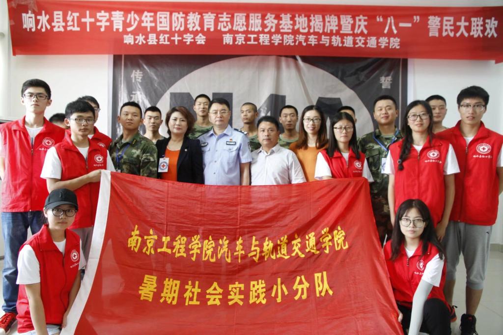 为加强大学生爱国主义和国防意识的教育,8月1日,正值八一建军90周年之际,我院学生工作负责人带领“爱同行”志愿服务团来到响水县武警中队,参加响水县红十字青少年国防教育志愿服务基地的揭牌仪式。“爱同行”志愿服务团队员还为武警官兵带来精彩的节目表演。随后,大家参观了武警官兵的生活环境,了解内务情况。同学们纷纷表示:“与兵哥哥们共度八一建军节十分开心,同时也体悟到了浓浓拥军情结,共享了军民互动之欢。”响水县红十字青少年国防教务志愿服务基地的建设是军民同心鱼水之情体现的窗口,也是促进响水县安全稳定、蒸蒸日上的有力保证。该院“爱同行”志愿服务团的加入也为响水县的和谐发展添砖加瓦。